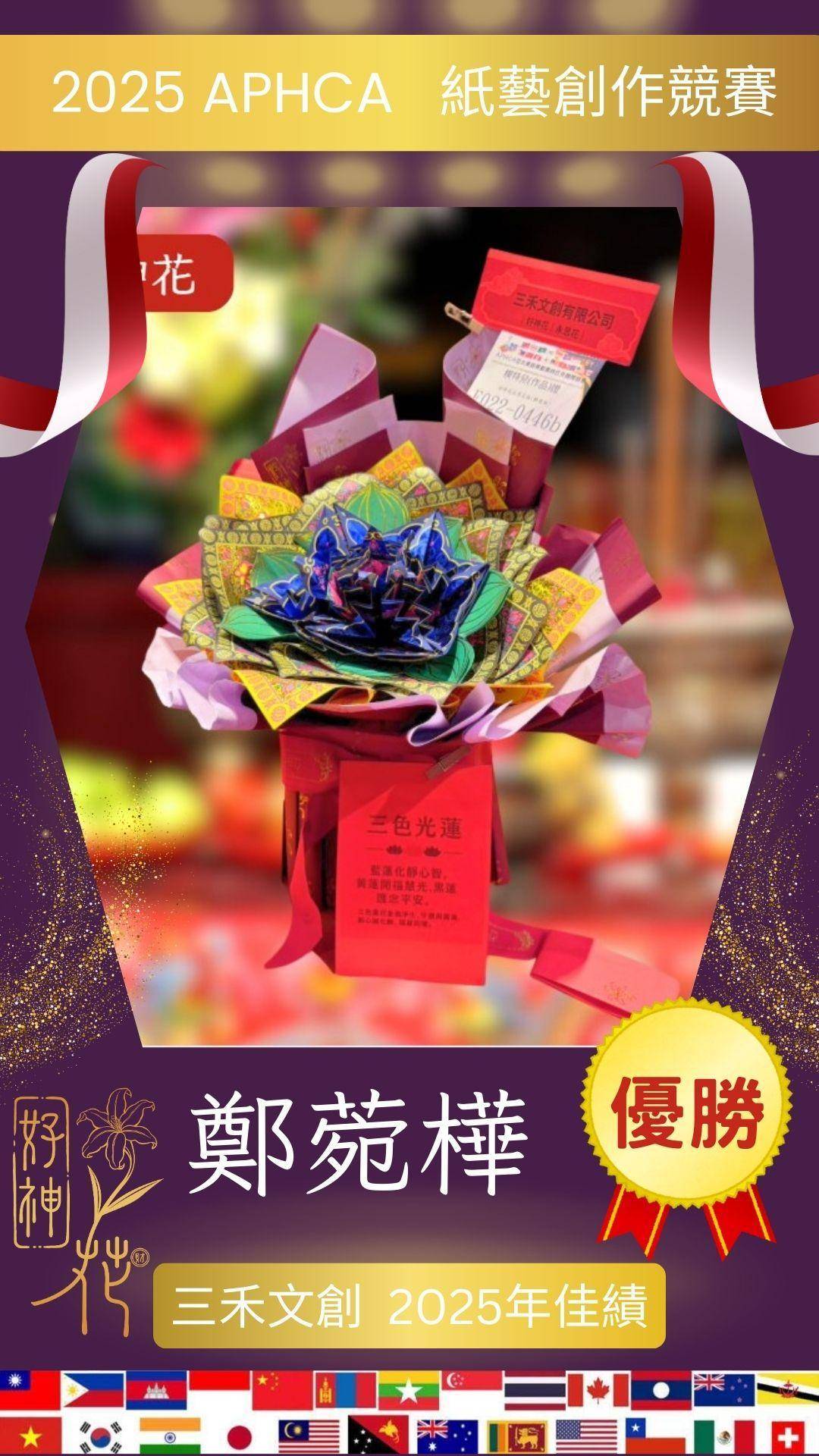 #好神花 #三色光蓮 #淨化守護圓滿 #鄭菀樺 #三禾文創 #靈性紙藝 #能量淨化 #紙藝競賽 #祝福藝術